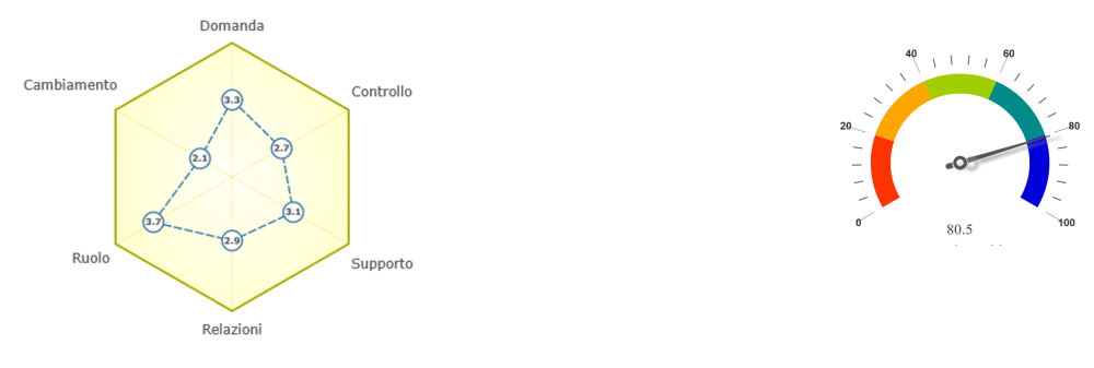 Al termine della fase di rilevazione, ad ogni soggetto verrà restituito il suo profilo, Inoltre, se interessati, si genererà un documento complessivo, per avere un "termometro" del livello di stress lavorativo del gruppo, su ciascun parametro.